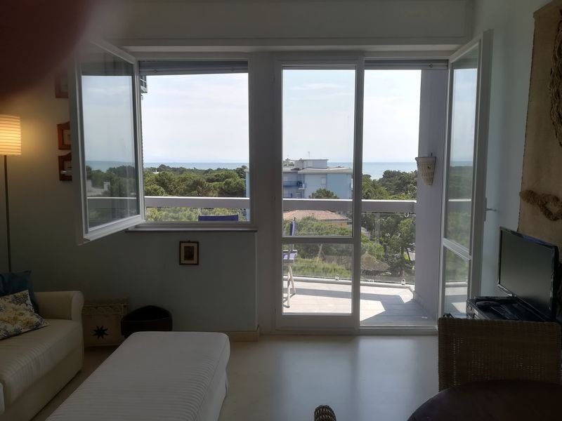 Condo dei Fiori in Lignano Pineta – Appartementhaus nur 300 Meter vom Meer, schöne Wohnung besteht aus: Wohnzimmer mit Schlafcouch , Küche, Doppelzimmer, Zimmer mit 2 Betten, Bad mit Dusche, Terrasse mit Meerblick, 6 Stock (mit Aufzug). Klimaanlage, Waschmaschine, Fernseher. Gemeinsamer Parkplatz.